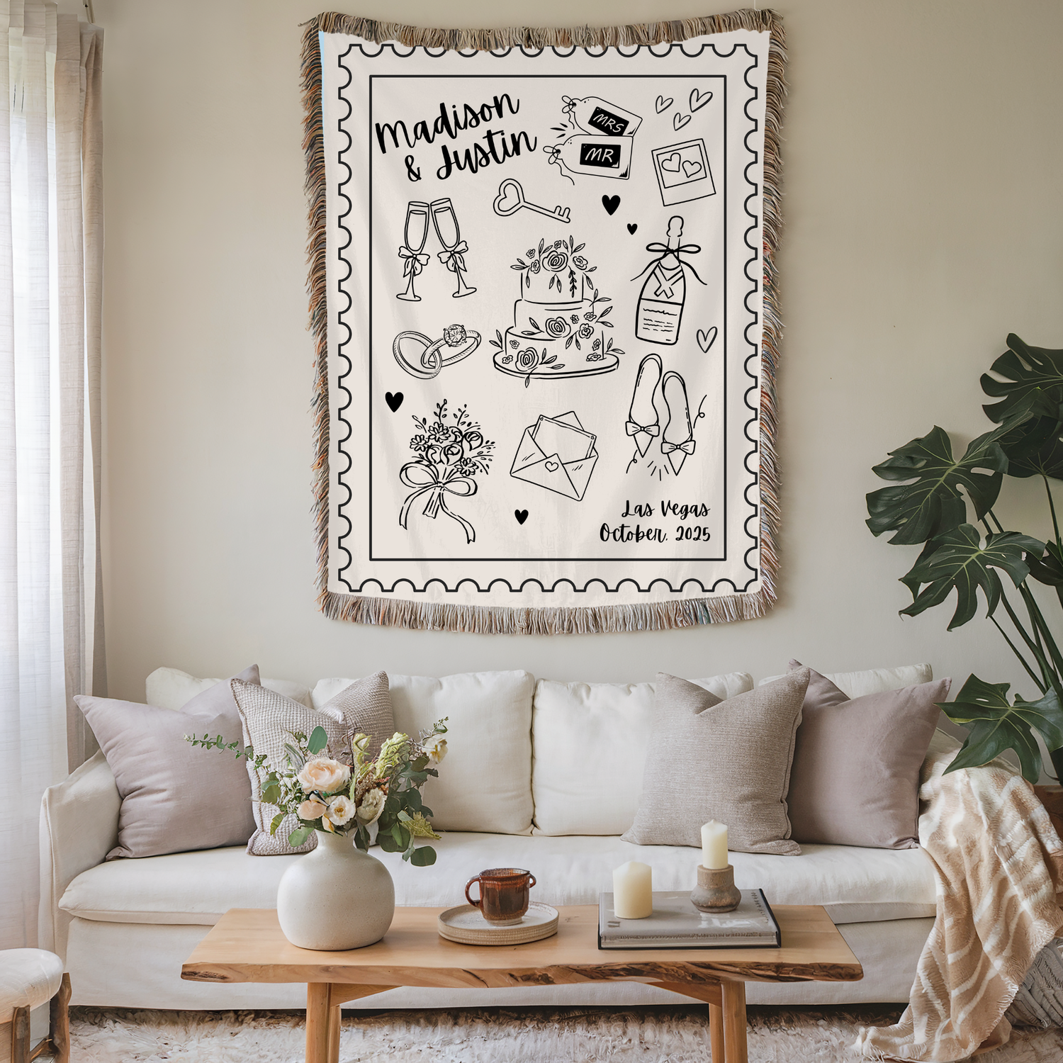 Custom Wedding Blanket, Personalized Wedding gift, Hand Drawn Wedding Blanket