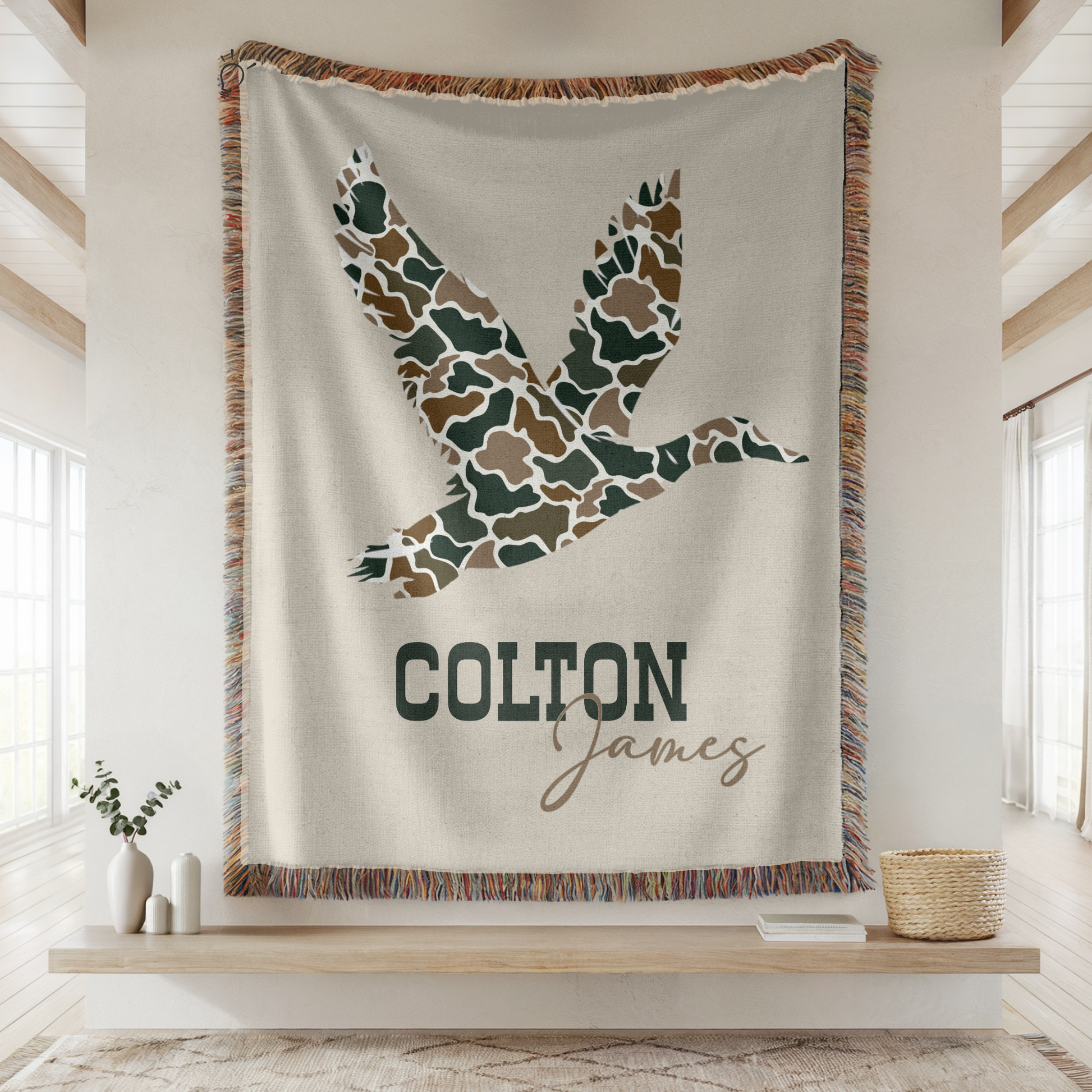 Personalized Camo Mallard Duck Baby Cotton Woven Blanket