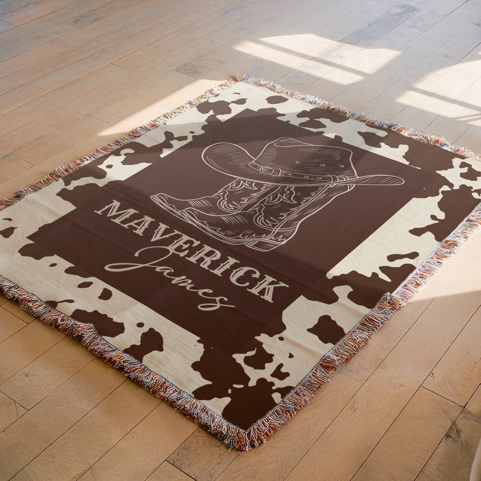 Personalized Western Cowboy Baby Name Blanket, Custom Name Cotton Woven Baby Blanket