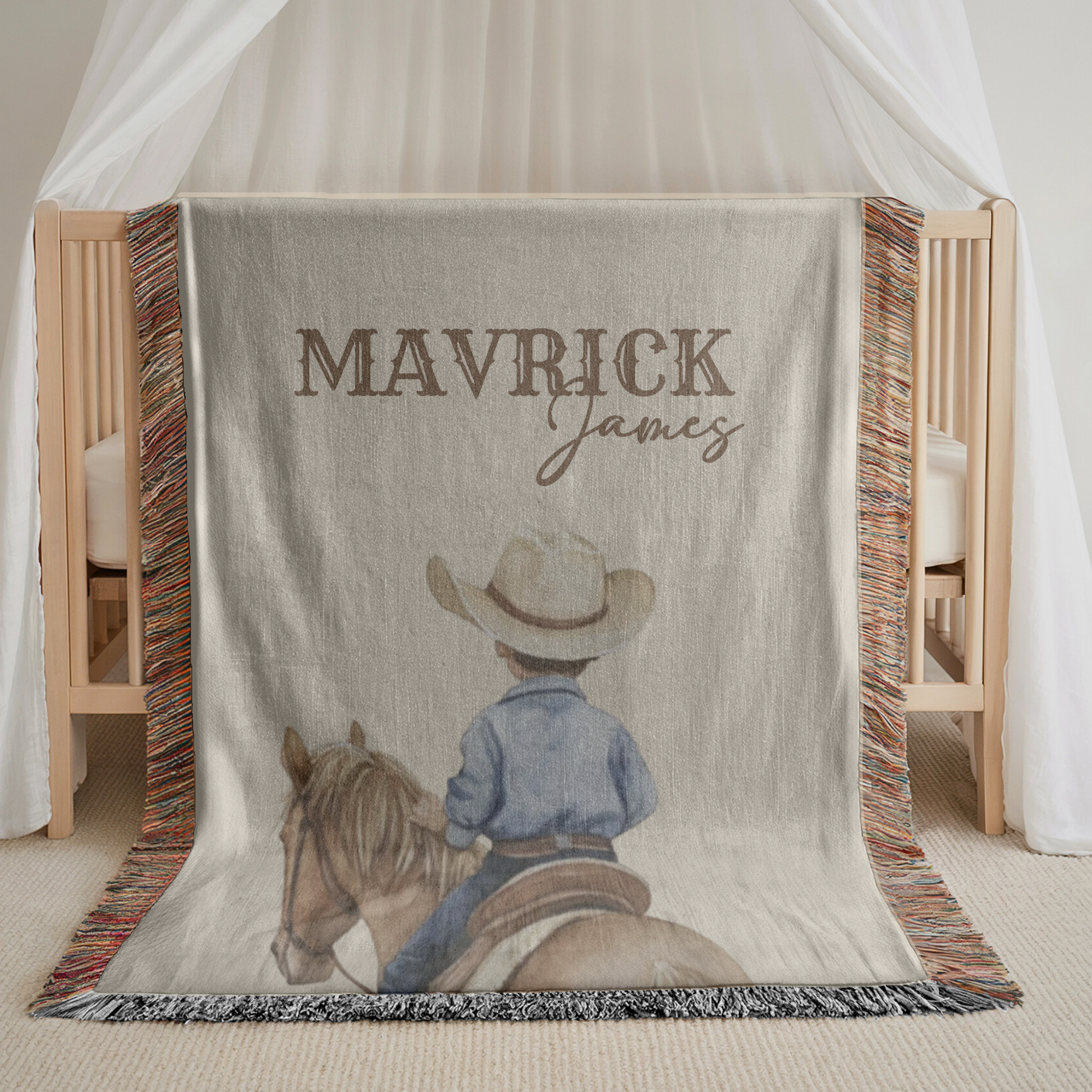 Personalized Western Cowboy Baby Name Blanket, Custom Name Cotton Woven Baby Blanket